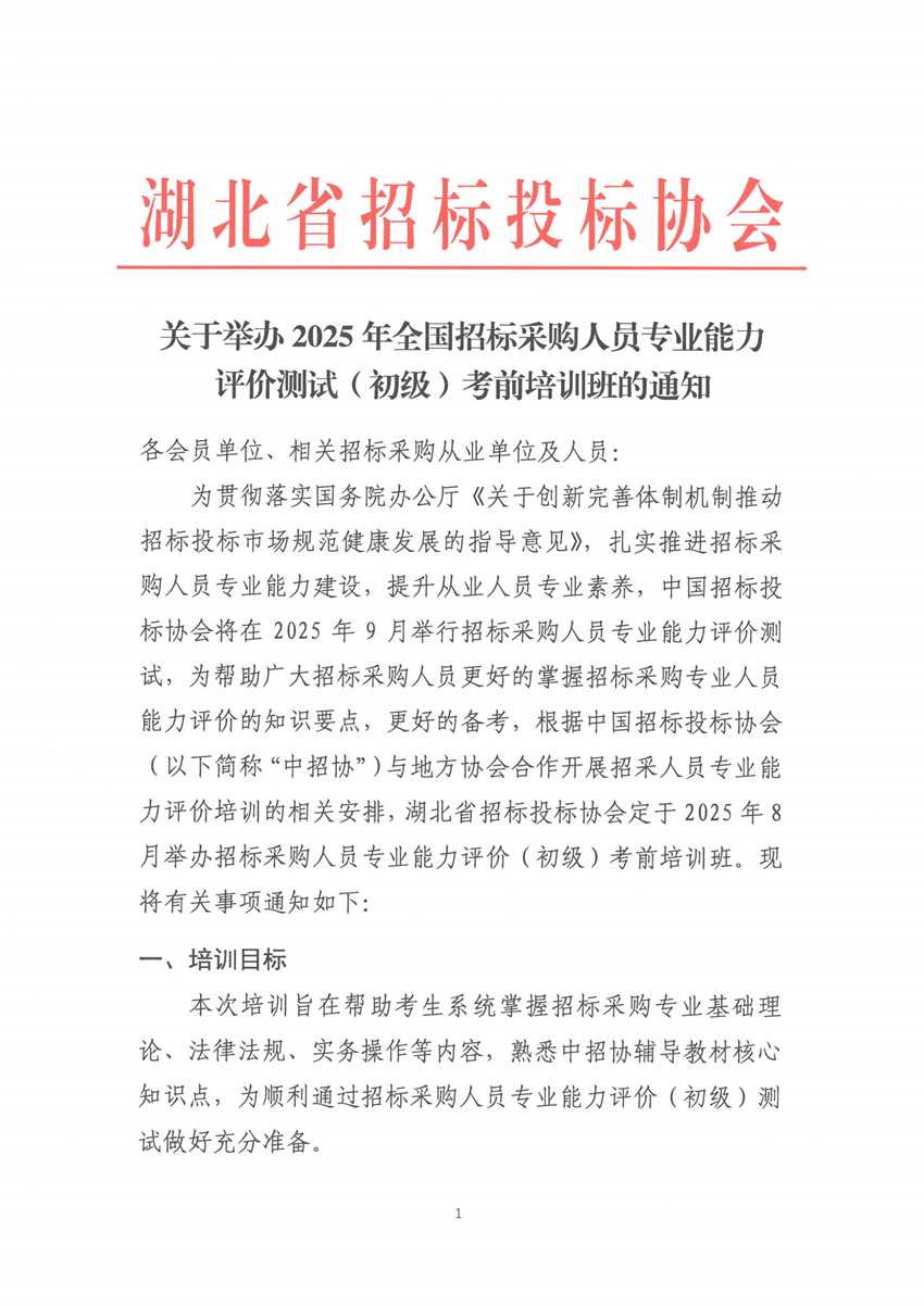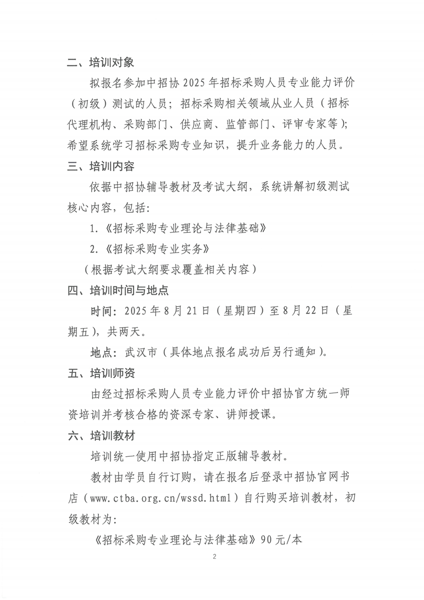 關于舉辦2025年全國招標采購人員專業能力評價測試(初級)考前培訓班的通知