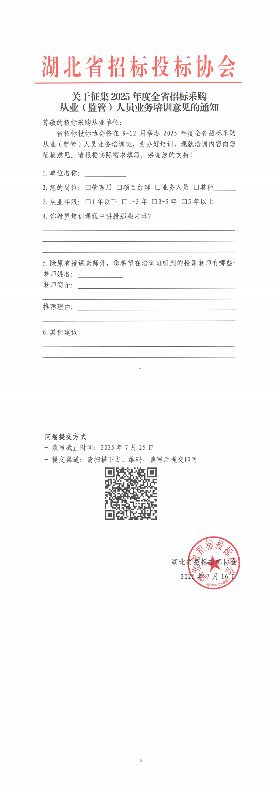 關于征集2025年度全省招標采購從業(監管)人員業務培訓意見的通知
